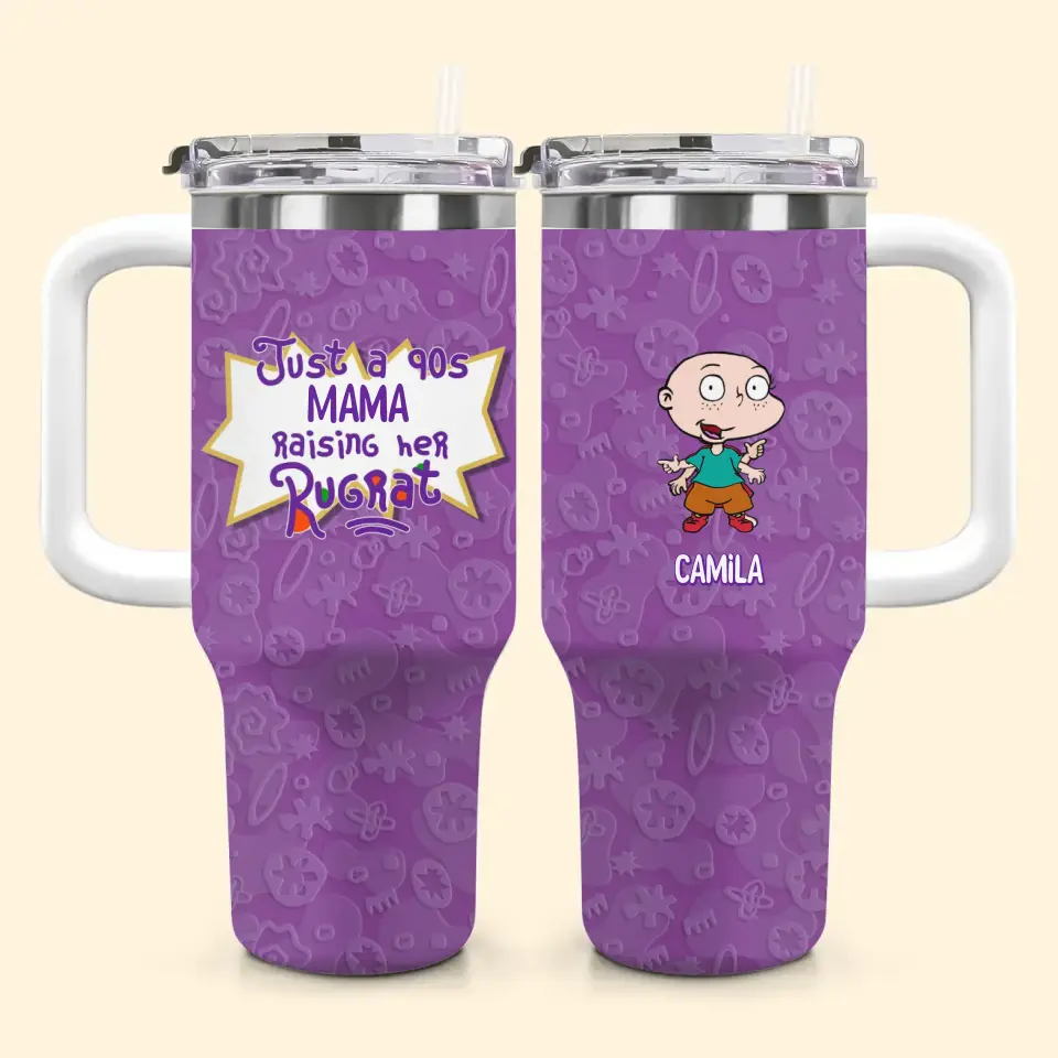 Just A Rising Her Rug Rats - Personalized Custom Tumbler With Handle - Mother's Day Gift For Mom